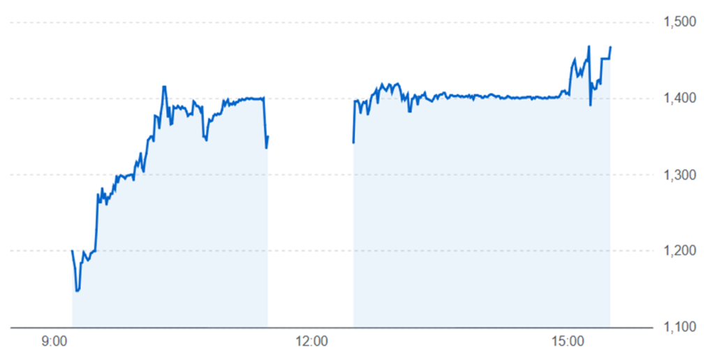 最近のIPOでは珍しく引け値がその日の高値という良好な展開でした。