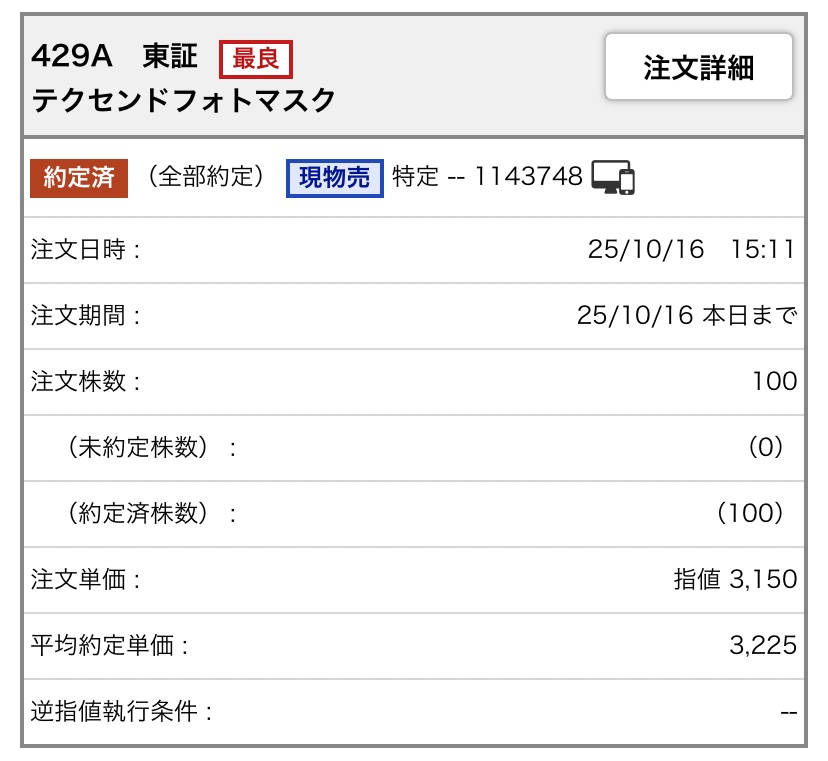 IPOで500株当選していたテクセンドフォトマスク(429A)を売却しました。